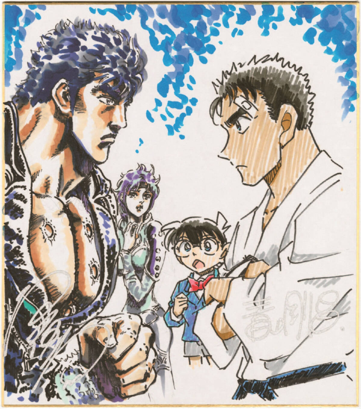 青山剛昌が原哲夫のテクニックに見惚れる 革ジャンのタッチがすごい 名探偵コナン 北斗の拳 コラボ色紙メイキング動画公開 2019年4月5日 エキサイトニュース 2 2