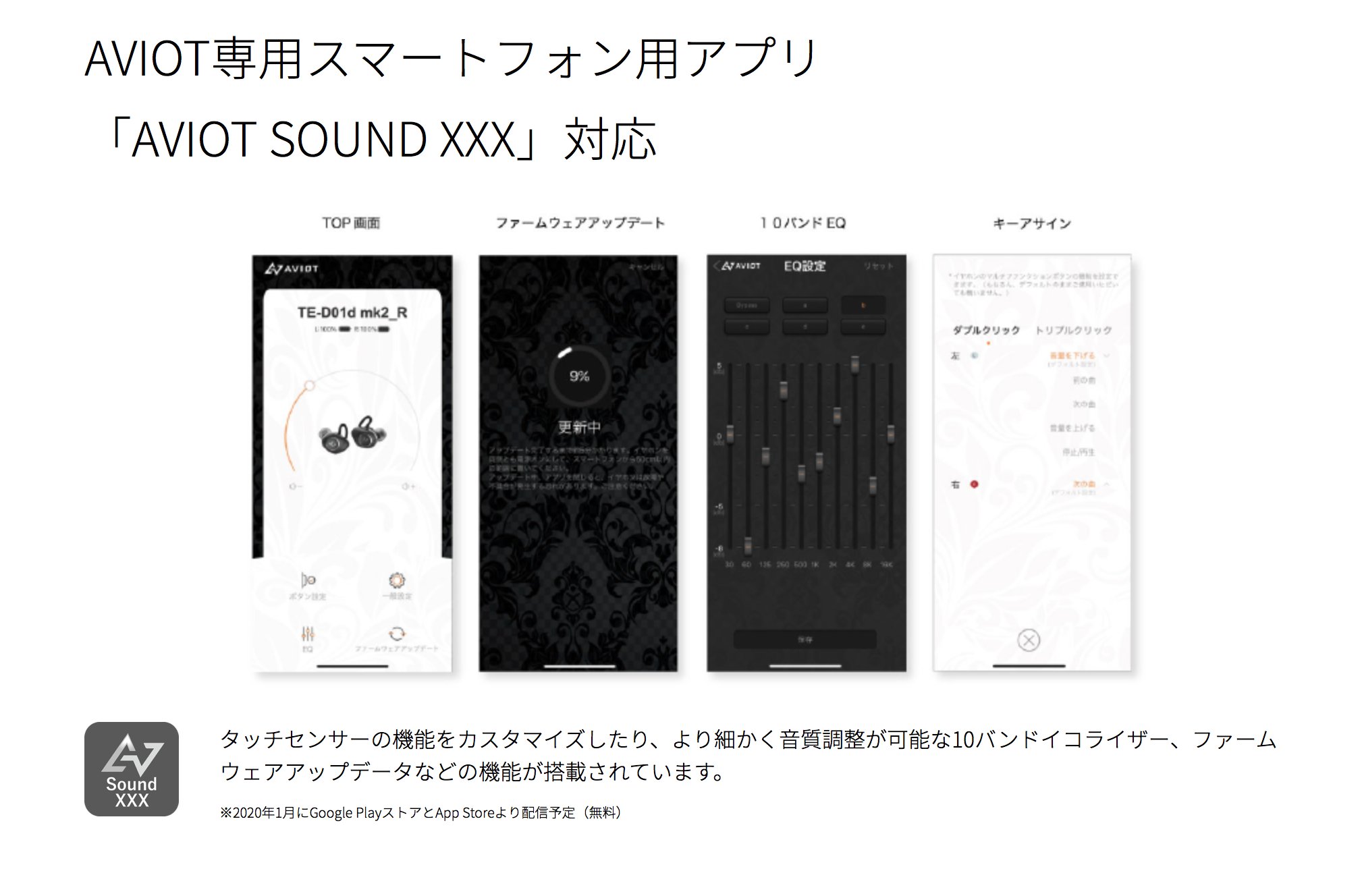 アビオット Aviot Japan On Twitter 2020年1月配信を予定しているアプリ Aviot Sound Xxx に新モデル Te D01d Mk2 も対応可能となりました Te D01g同様に 10バンドグラフィックeq Fwアップデート キーアサイン設定が行えます Https T Co Hxhmm7bth4 Https