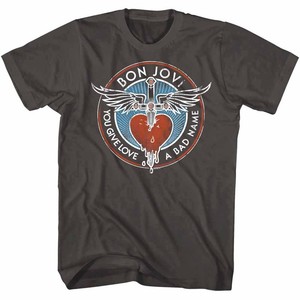 Bon Jovi You Give Love A Bad Name Charcoal Men S T Shirt Rock Band Tee Heart Ebay