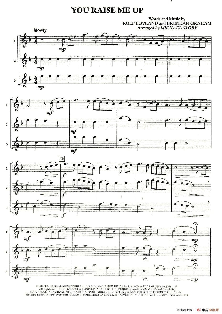 谱 You Raise Me Up Westlife钢琴谱文件 五线谱 双手简谱 数字谱 Midi Pdf 免费下载
