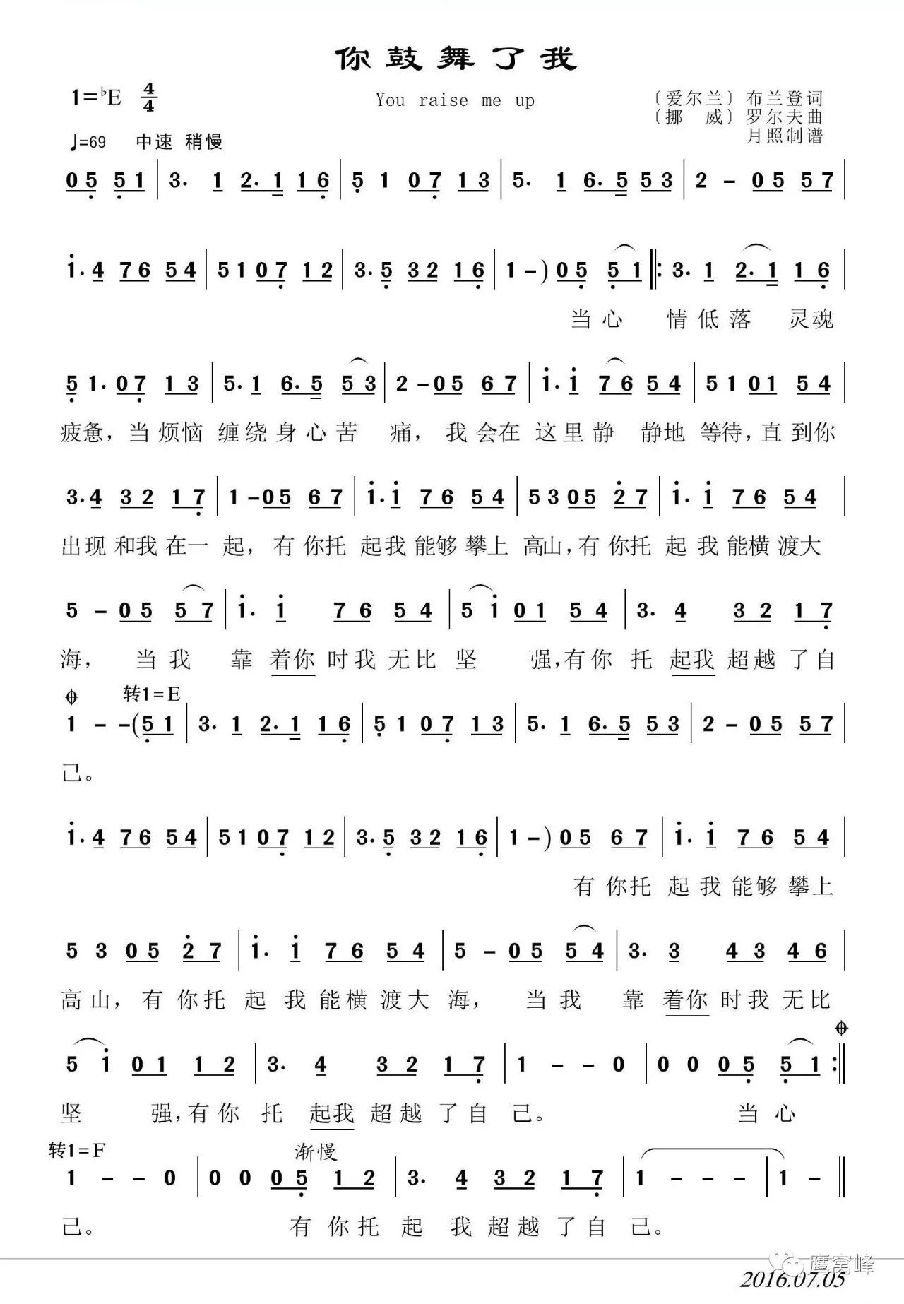 你鼓励我 You Raise Me Up 新译配版 谱友园地 中国曲谱网